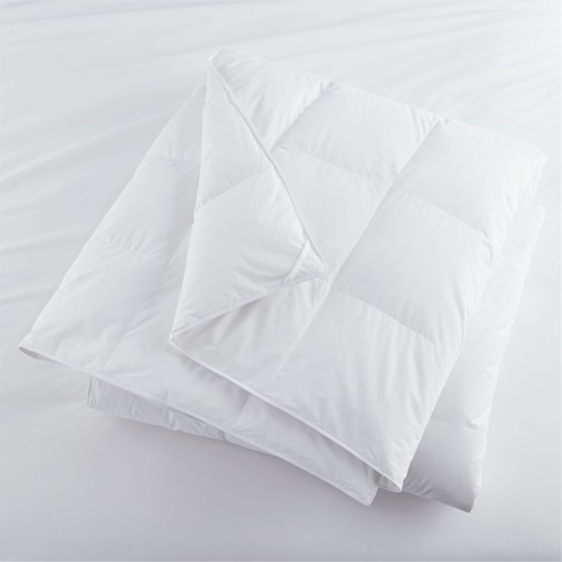 A lightweight option for warmer months or climates, this premium down duvet insert has a baffled box construction for maximum loft and minimal shifting. Filled with sterilized white domestic duck down, the lightweight duvet insert has exceptional color uniformity. The cambric cotton cover is featherproof, preshrunk and detailed with double needle-stitched edges and cotton cording.