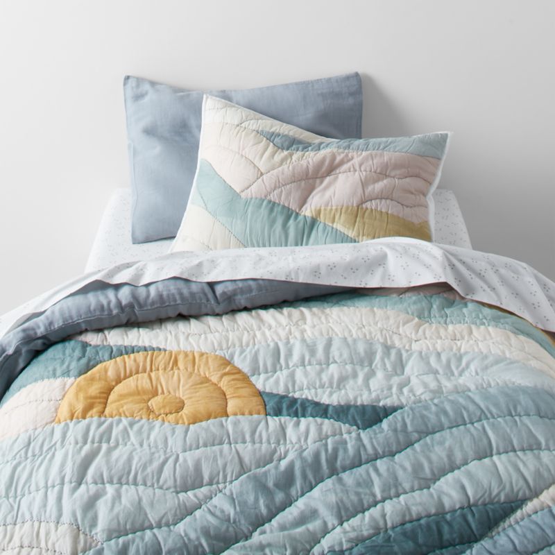 Cloud Embroidered Hand-Quilted Organic Cotton Kids Twin Quilt