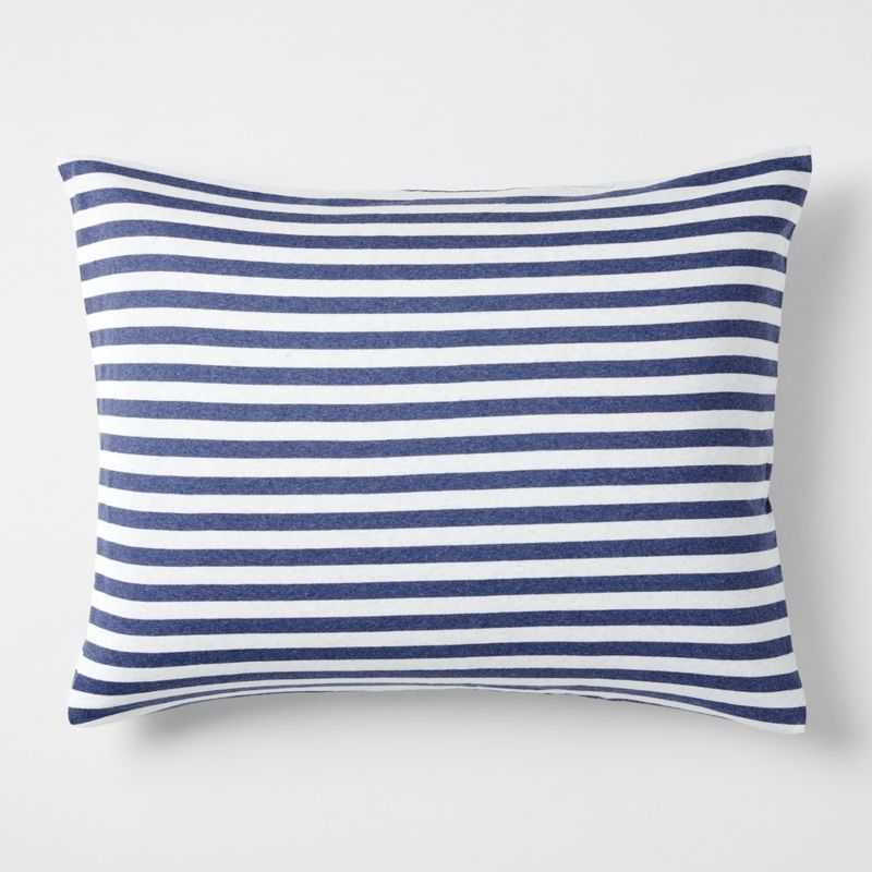 Softer than their favorite tee, cool to the touch and yarn-dyed for long-lasting color, our Organic Cotton Jersey Bedding Collection just changed the bedding game. And by choosing organic cotton, you're helping create a better future for your kids: Compared to conventional cotton, it can reduce CO2 by 46%, energy consumption by 62% and irrigated water consumption by 90%. This Navy Striped Pillow Sham coordinates with our matching Duvet Cover, as well as the rest of our Organic Cotton Jersey Bedding Collection in a range of rich hues.