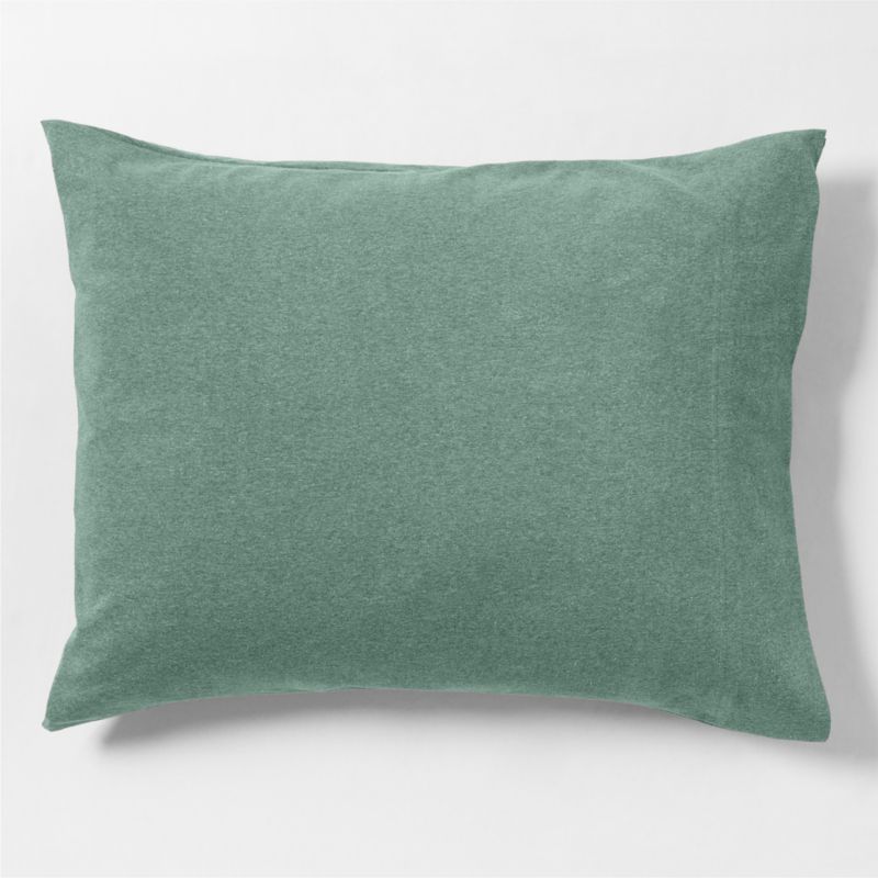 Softer than your favorite college tee, our Comfy Tee bedding is just as cool and comforting. Organic cotton in heathered green knits this plush pillow sham, the perfect finishing touch for a dorm room bed made with the matching sheet set and duvet cover. Or layer in our green-and-white striped Comfy Tee jersey bedding for a pop of pattern.