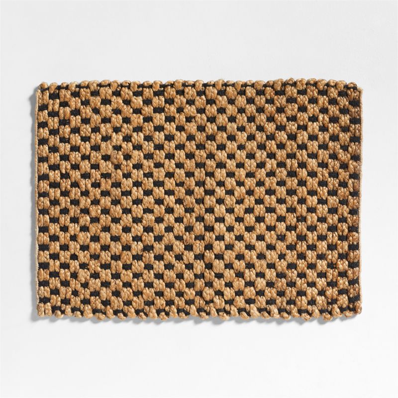 The classic checkerboard pattern gets an organic update in our woven doormat. Jute braids bundled together intersect intricately woven black strips for a modern organic doormat with graphic appeal. Handwoven by skilled craftspeople, the mat brings artisanal and natural beauty to your entryway or mudroom. The chunky texture of the fiber wipes off shoes and boots effectively while welcoming you home with a warm and timeless look.