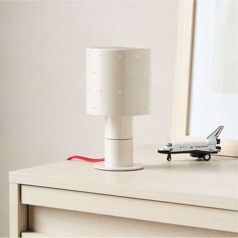 Bring extra twinkle to bedtime. Created in collaboration with Converse, our All Star table lamp features tiny star punchouts—inspired by the brand's iconic logo—to cast a magical glow in the nursery or bedroom. A red cord adds a modern punch of bright color, and the petite size is perfect for nightstands and side tables.