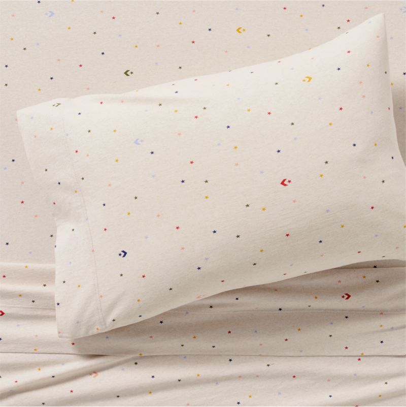 Created in collaboration with the legendary sneaker brand Converse, these Speckled Star sheets bring a stylish twinkle to kids' bedrooms. In our bestselling Comfy Tee organic cotton jersey, a sea of stars in on-trend colors and the brand's chevron logo are sprinkled across a subtly textured melange base. True to their name, the sheets feel softer than a favorite tee, keeping kids comfortable through all seasons. Pair them with our Converse quilts and pillow shams for a cool, layered look.