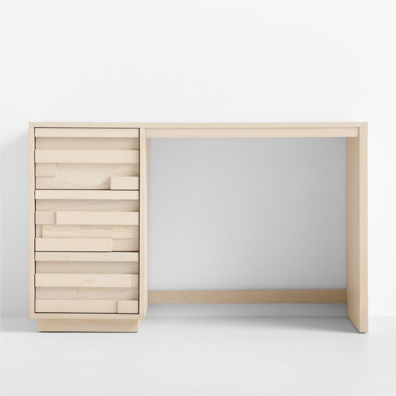Teaming up with Converse, we went into overtime to create a kids' room collection that's built to last and forever cool. Inspired by the floor of a basketball court, this modern desk features ash wood planks in a striking geometric pattern. In a light, versatile whitewashed finish, the piece includes 3 drawers and a large work surface for drawing or homework. Pair it with our Converse corduroy desk chair for a total style layup.