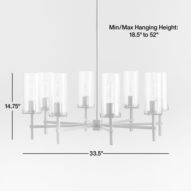 Our Coquina eight-light chandelier gleams overhead in a compelling interplay of geometry and clear glass. Squared-off arms and uprights finished in burnished brass intersect gracefully, supporting cylindrical shades of subtly bubbled glass. We love our exclusive Coquina chandelier in an entryway to create a stunning first impression, or above a stand-alone bathtub to set a luxurious mood.