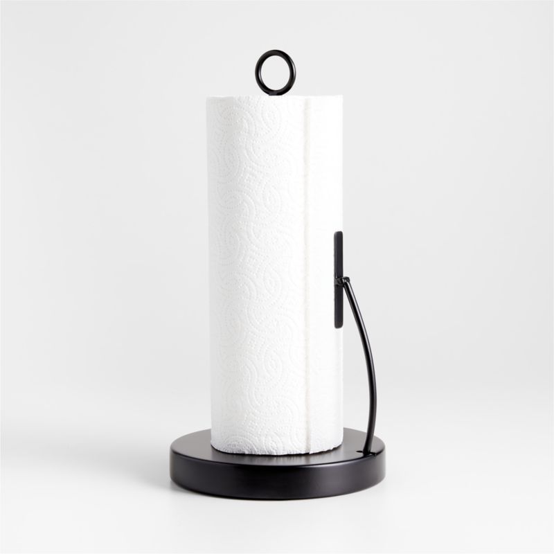 Inspired by our Cora basket collection, this paper towel holder features the same decorative loop finial and black iron construction. The tension arm prevents a roll from unraveling and allows for one-handed tearing. Simple and substantial, the weighted base won't be knocked over easily in a busy kitchen. Pair with our black Cora fruit baskets for a coordinated countertop.