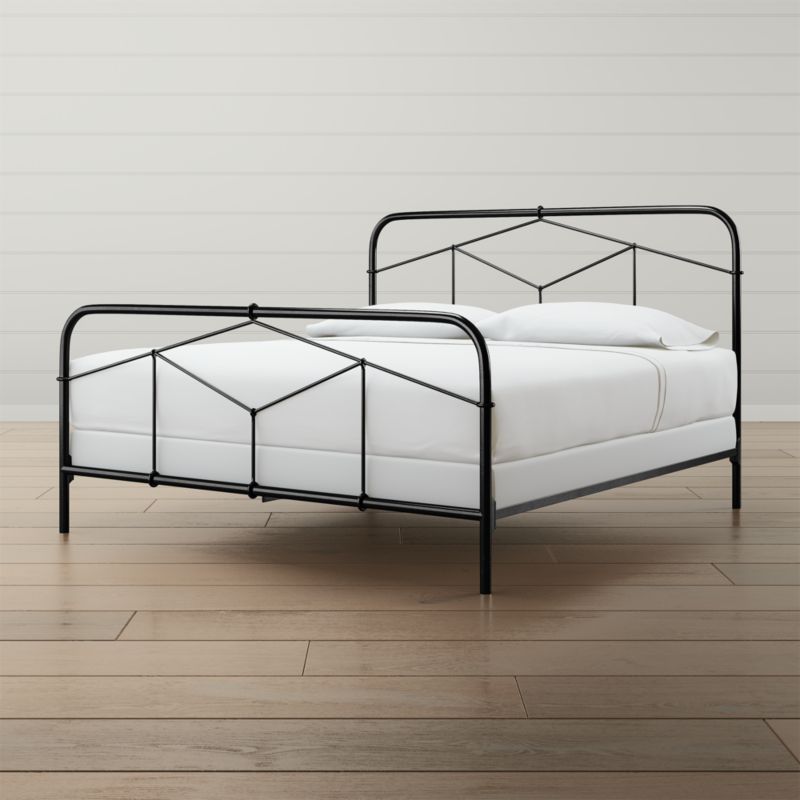 Inspired by vintage hospital beds, the Cora king bed updates this retro look with a bit of modern geometry and black iron tubing that looks airy and feels substantial.