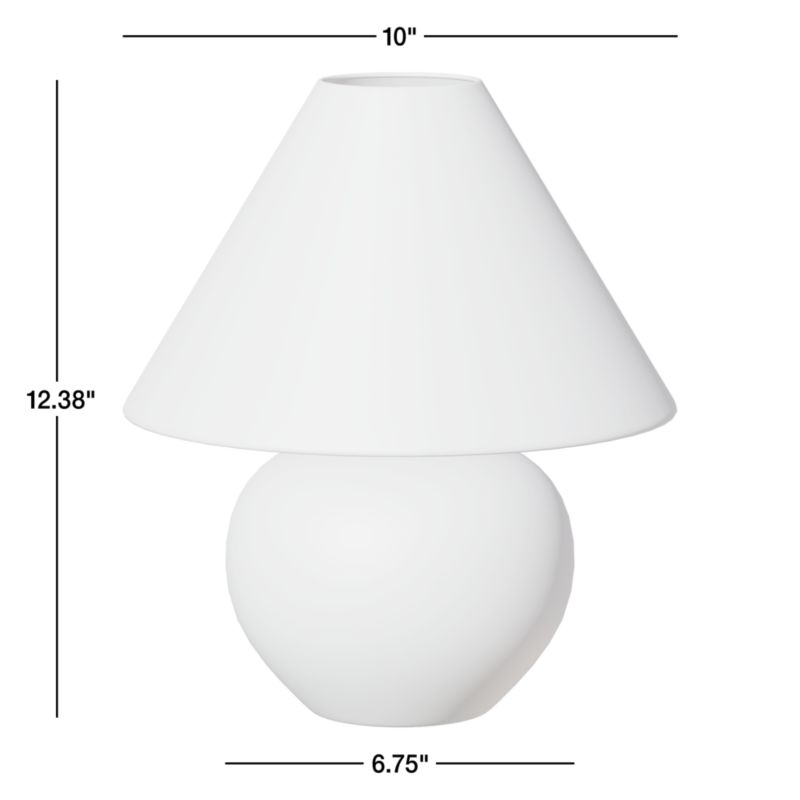With its ginger jar curves and rustic finish, our small Corfu table lamp illuminates interiors with pleasing proportions and nuanced style. A creamy painted finish lends an artisan-like look to the base, while the tapered shade complements with the neutral color and texture of the linen. Perfectly sized for a nightstand, bookcase or petite side table, each Corfu lamp is beautifully unique.