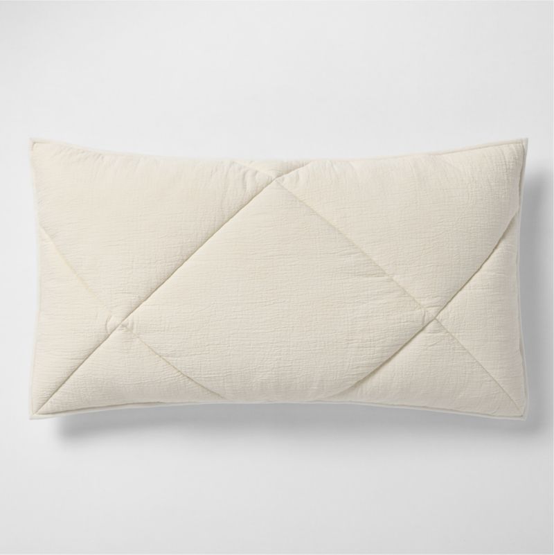 Quilted on the diagonal with oversized diamonds, this pillow sham makes the bed with a laid-back yet luxe feel. Creamy beige cotton weaves the unique crinkle finish for a featherlight, updated take on quilting with texture and depth. Voluminous filling adds plush comfort and coziness year-round. Pair the king sham with our other Aire Cotton Crinkle or Calm Beige bedding for a fresh and relaxed look.