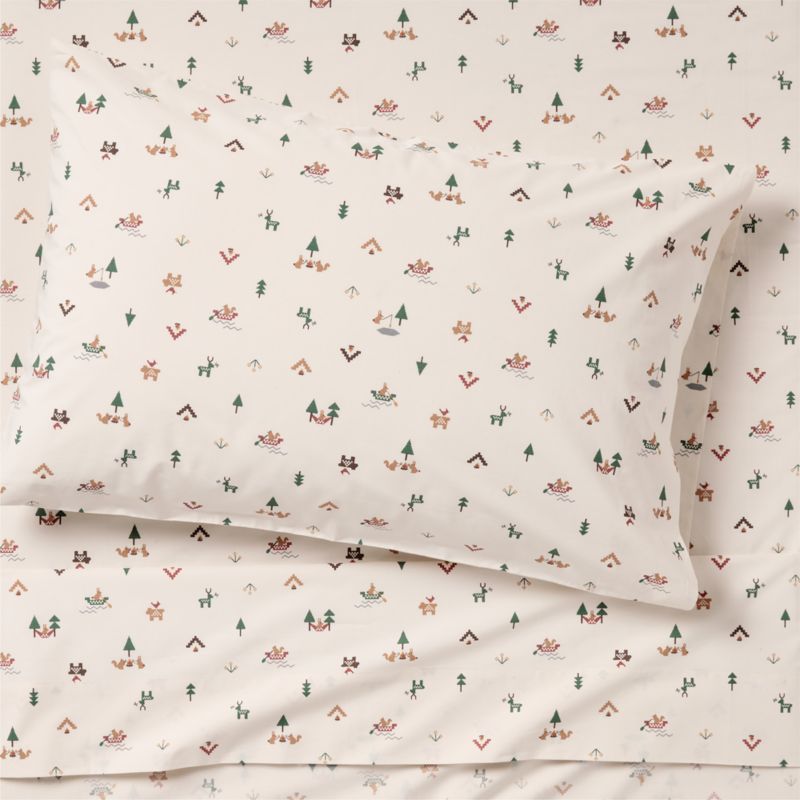Our Cozy Camper sheet set evokes the nostalgia of summer adventures year-round. On a backdrop of naturally flecked undyed cotton, our modern take on a folk-art design features screenprinted campfires, tents and forest animals. The organic cotton percale has a crisp, cool feel that's perfect for warm sleepers and gets softer with each wash. Pair it with our coordinating duvet cover and sham for one happy—and cozy—little camper.