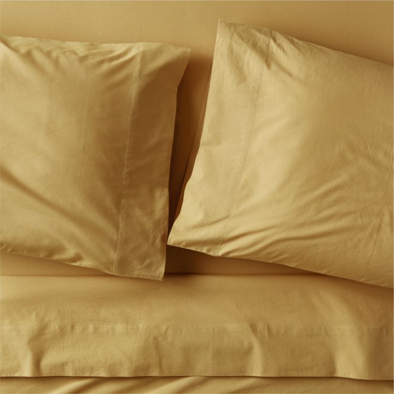 Based on the bestselling Crate & Barrel collection, our Washed Organic Cotton Sheet Set delivers a casual, relaxed look that's soft on the skin—just like a favorite piece of clothing. And the golden Savannah Yellow hue makes a modern-yet-timeless style statement. Pair with our Washed Organic Cotton Duvet Cover and Pillow Sham in matching Savannah Yellow, or choose from a range of coordinating colors.