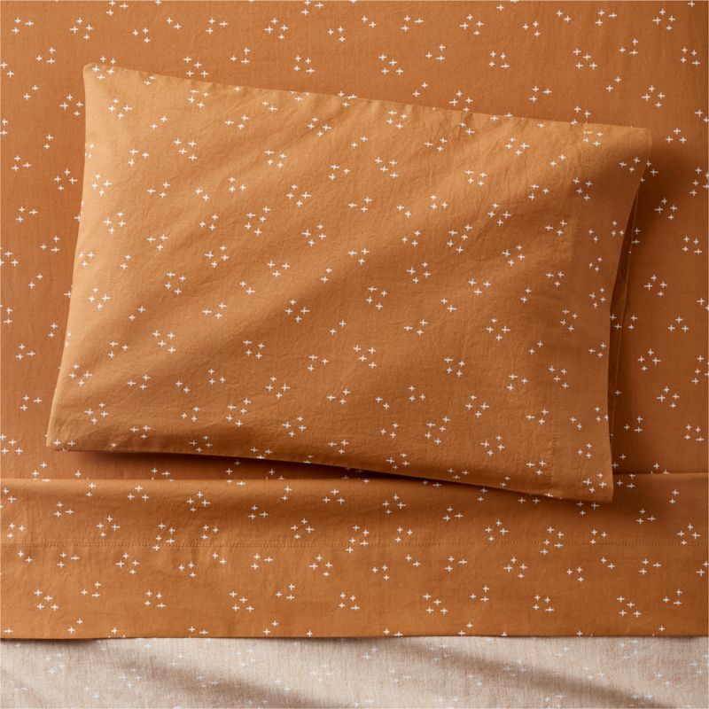 Our Twinkle Washed Organic Cotton Toddler Sheet Set delivers a casual, relaxed look that's soft on the skin—just like a favorite piece of clothing. The rich, warm Brulee Brown color makes a modern style statement, and the starry hand-illustrated print adds an abundance of charm.