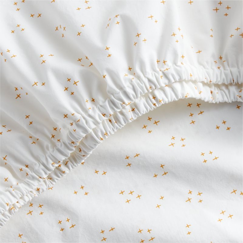 Our Twinkle Washed Organic Cotton Baby Crib Fitted Sheet delivers a casual, relaxed look that's soft on the skin—just like a favorite piece of clothing. Drawn in a cheerful yellow hue, the hand-illustrated stars pop against the crisp ivory background for a touch of dreamtime magic. Pair with our matching Twinkle Savannah Yellow Organic Changing Pad Cover for a complete nursery look.