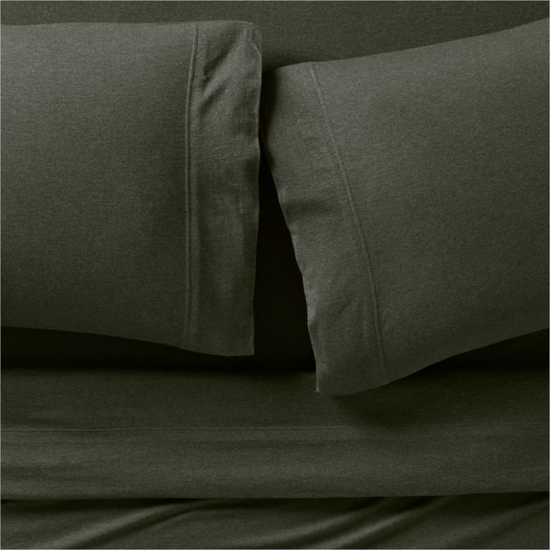 Softer than your favorite t-shirt—and just as casual-classic—our Cozysoft collection makes a bed you won't want to get out of. Organic cotton knits breathable jersey bedding that's supersoft and irresistibly cozy. Heathered for depth, the dark green-grey fabric serves as a sophisticated neutral. Layer the sheet set with the coordinating duvet covers, pillowcases and shams for a modern look that's understated and inviting.