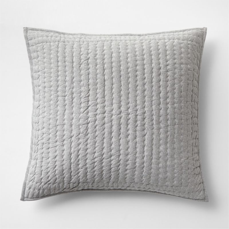 Softer than your favorite t-shirt—and just as casual-classic—our Cozysoft collection makes a bed you won't want to get out of. Traditional kantha quilting gets a modern casual update in this textural pillow sham. Heathered for depth, the light grey organic cotton jersey is stitched by hand into narrow channels for a dotted effect and a supersoft ribbed feel. The perpendicularly sewn border finishes the sham with subtle linear contrast. For an understated and ultra-inviting bed, add the matching quilt and the coordinating heathered light grey sheet set and duvet cover.