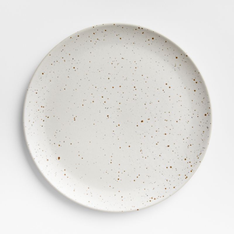 A study in delicious contradictions, our Craft dinner plate is strong and durable yet light and refined with a warm minimalism that suits everyday use and elegant occasions. A lightly speckled glaze in white coats the plate's low-profile contours. Ideal for chef-inspired entrees or carry-out favorites, the white dinner plate combines with our other Craft dinnerware and table linen collections to set a modern table.