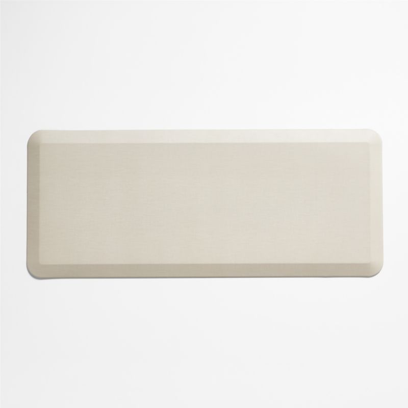 Topped with natural flax-hued fabric, this elegant kitchen mat made just for us eliminates fatigue as you chop vegetables, roll out cookies and wash dishes. The thick and supportive mat helps reduce impact so you can clean and cook in comfort. Thanks to its curl-free beveled edges and non-slip bottom, the kitchen mat helps create a safe workspace in the kitchen or laundry room—or in the office paired with a standing desk. The stain- and water-resistant mat cleans up easily with a quick swipe of a soapy cloth.