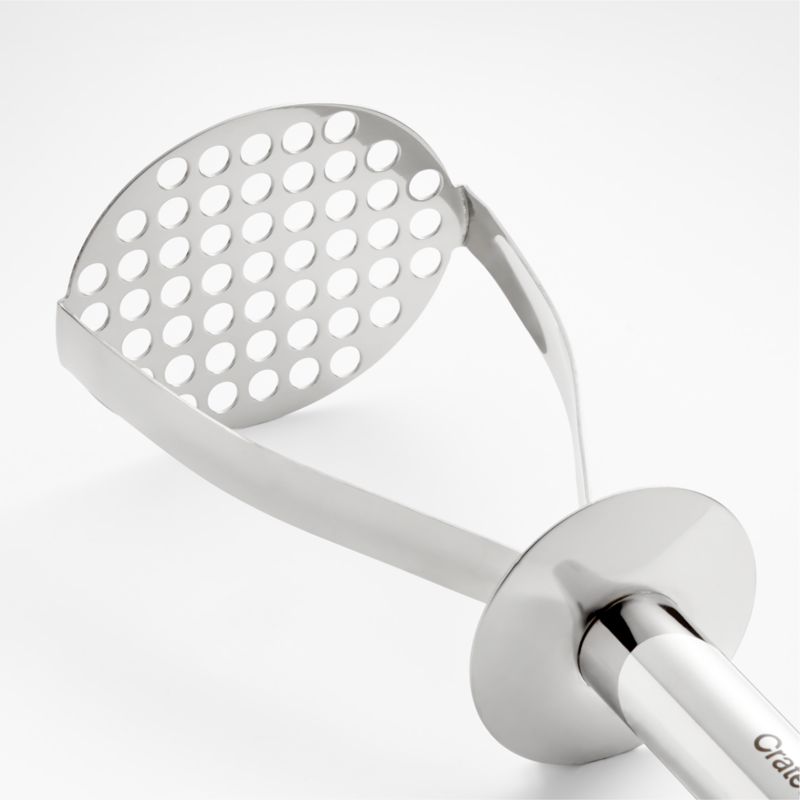 Mash potatoes, sweet potatoes, avocados and cooked apples with ease using our signature potato masher. The dishwasher-safe tool boasts a slight curve that allows a rocking motion—and an extra-smooth mash. Stainless steel shapes the sleek tool accented with a refined beveled edge that finishes the handle with dynamic detail. Our exclusive Crate & Barrel kitchen collection makes for a well-outfitted workspace that's up to any cooking challenge.