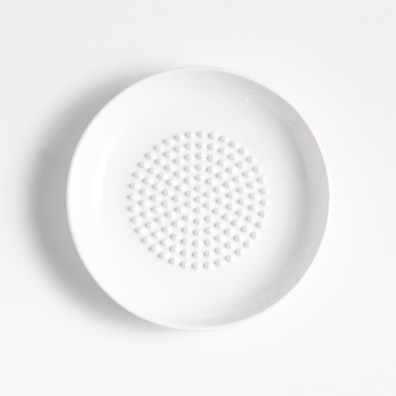 We're a bit obsessed with this lovely and ingenious garlic plate. The dish is textured at the center with concentric circles made up of tiny spikes—simply rub them with cloves of fresh garlic, add olive oil and serve with bread as an irresistible appetizer. Crafted of durable porcelain with a glossy white glaze, the plate also grates ginger, wasabi and cinnamon for a variety of recipes and cleans up easily in the dishwasher.