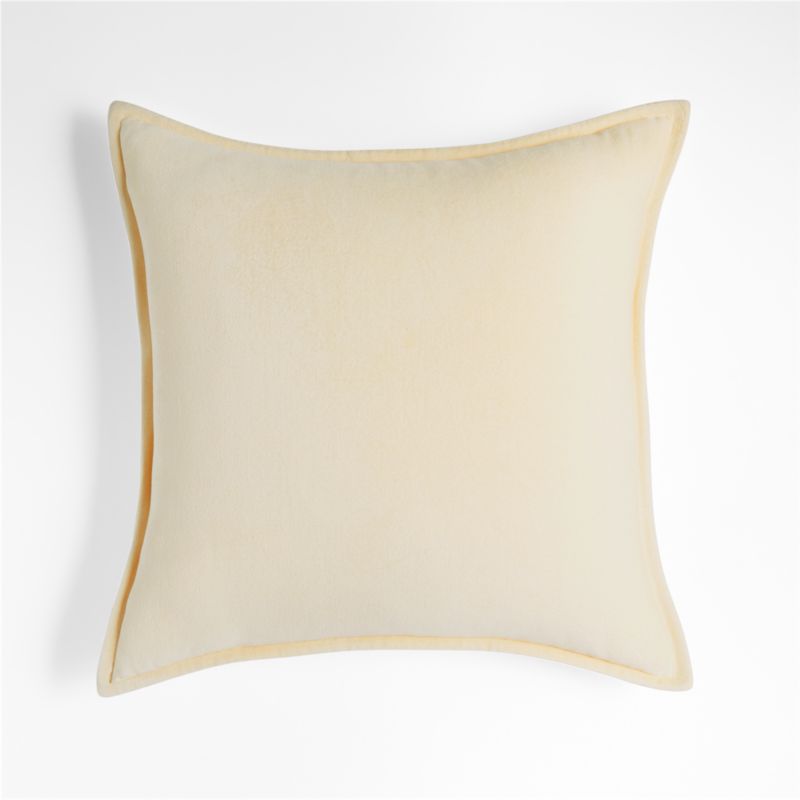 Neat and classic, our luxurious washed organic cotton velvet pillow in cream adds the perfect mid-century modern accent to a sofa or chair. Neatly tailored with self-welting, the pillow indulges with plush texture. Layer the off-white pillow with other solid or patterned pillows in our collection. Our decorative pillows include your choice of a plush Feather or lofty down-alternative insert.