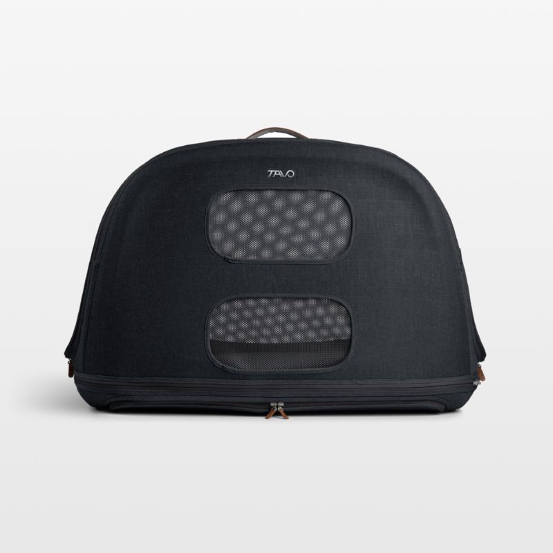 De-stress road trips with the Crispin pet travel crate. Designed to keep your pet safe and comfortable, the crate locks securely into the vehicle seat. Mesh ventilation panels encourage airflow and let your pet see out, while tall doors zip open for easy in-out access. Engineered for safety, the pet carrier is impacted tested to child-restraint standards and features energy-absorbing memory foam and side-impact protection. Humans will love the collapsible, space-saving design and convenient carry bag and dust cover.