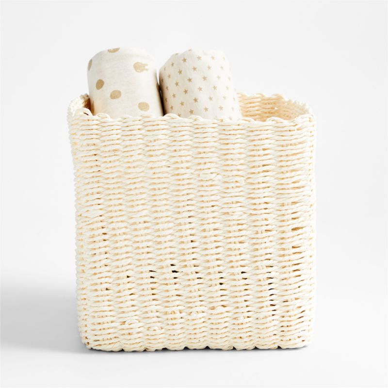 Beautifully crafted of handwoven FSC®-certified paper, our Croft bin is ready to corral toys, clothes, books and more. With its clean, square profile and fresh cream-colored hue, this shelf bin fits seamlessly into any decor scheme.