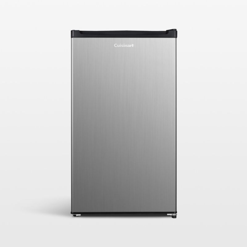 Compact and classic in stainless steel, this modern mini fridge brings snacks and sustenance to dorm rooms, workshops, garages, studios and other small spaces. A fruit and vegetable crisper drawer, two adjustable shelves and five door shelves keep contents organized and accessible, while the freezer compartment stores frozen meals and treats. Designed to make efficient use of limited space, the freestanding refrigerator is fronted by a sleek single door that opens to the right or left to accommodate your room layout.