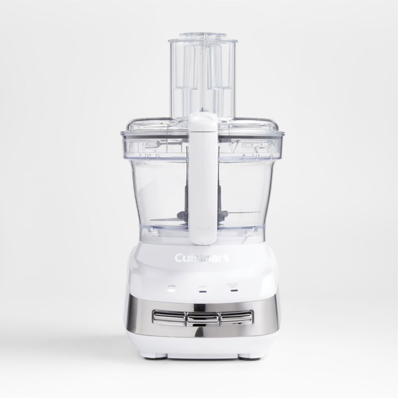 This kitchen workhorse speeds along prep and cooking, with a powerful motor for making quick meals, weeknight dinners or weekend celebrations. With a sleek countertop presence in bright white accented with stainless steel, the processor features a large-capacity work bowl made of durable Tritan that can accommodate large batches of salsa, hummus, bread dough or slaw. The reversible slicing disc, reversible shredding disc and multi-purpose blade nest together in a removable storage hub. Take your meal prep to the next level by customizing the food processor with Cuisinart Core Essentials blender, juices extractor, dicing kit, specialty discs, and small work bowl accessories sold separately.