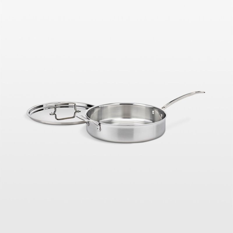 A favorite of professional and home cooks, triple-ply cookware delivers excellent results. This stainless steel-clad saute pan will not discolor nor react with foods. Cuisinart's Heat Surround Technology provides consistent heat distribution along the base and side walls for even cooking and baking.The drip-free rim pours neatly, and the Cool Grip handle stays cool on the stovetop for a safe and solid grip. Top with the tight-fitting lid to seal in heat and moisture.