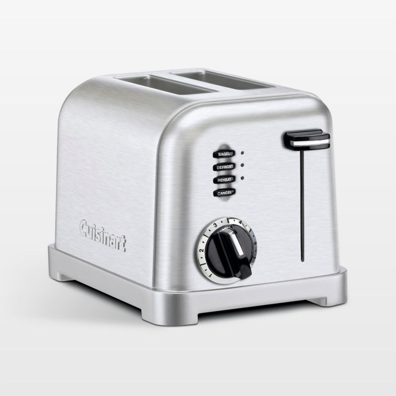 Modern function with a retro look. Designed with space-age curves, industrial durability and streamlined style, this two-slice toaster charms on the countertop. Choose from among the six browning levels for the perfect piece of toast. Or use the Bagel setting to add extra time, the Defrost option for frozen slices and toaster pastries or the Reheat setting to warm without toasting. An integrated cord wrap keeps things tidy when the toaster's not in use, while chrome accents complete the vintage look.