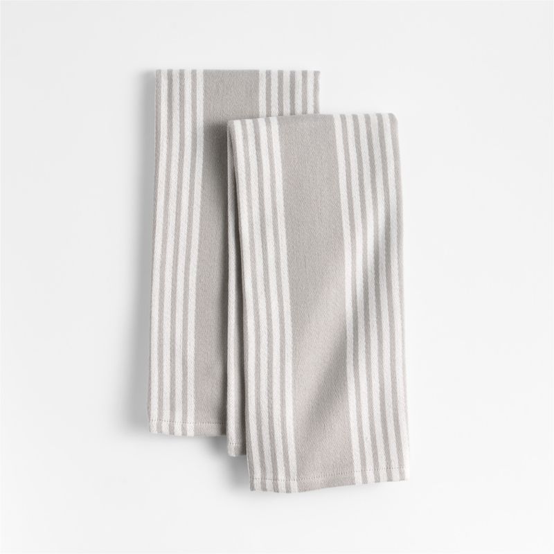 Cuisine Grey with White Stripe Organic Cotton Kitchen Towels, Set of 2