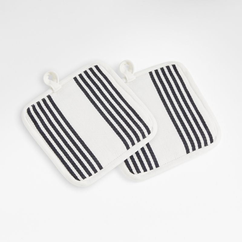 Cuisine Stripe Black Organic Cotton Pot Holders, Set of 2