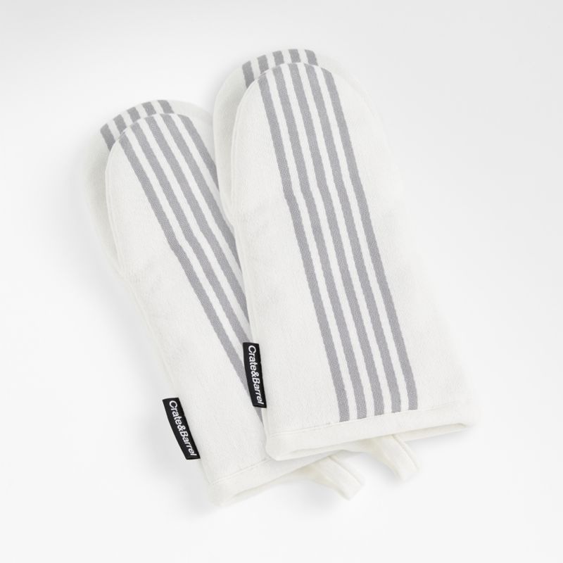 Cuisine Stripe Grey Organic Cotton Oven Mitts, Set of 2