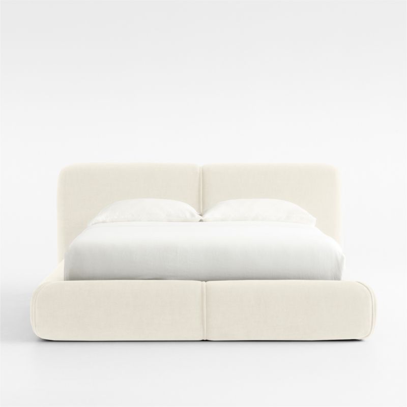 Our Curios bed speaks pure comfort with cozy upholstery and low profile. Inspired by 1970s design, the bed looks contemporary yet approachable with a rounded, well-cushioned headboard and rails upholstered in soft chenille. Jumbo welt detail adds to the bed's exuberant style.