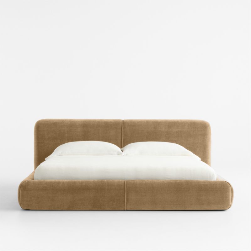 Our Curios bed speaks pure comfort with cozy upholstery and low profile. Inspired by 1970s design, the bed looks contemporary yet approachable with a rounded, well-cushioned headboard and rails upholstered in soft chenille. Jumbo welt detail adds to the bed's exuberant style.