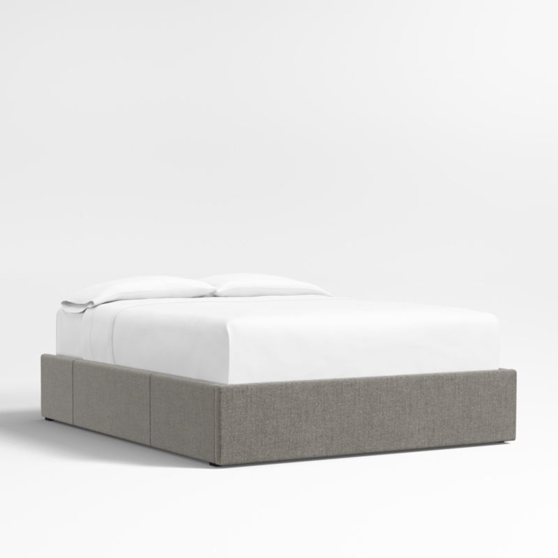 Our custom bed collection lets you mix and match our top-selling headboards and bases for a look that's truly yours. A great choice for smaller, storage-challenged bedrooms, this base includes three roomy drawers—one on each side and one at the foot of the bed—for storing off-season clothes and extra blankets. As a plus, the side drawers open with just enough clearance to avoid hitting nightstands and other bedroom furniture. Padded and neatly tailored, the storage bed is upholstered in a dark grey bouclé weave. Our exclusive grey storage bed base is designed to fit perfectly with any of our signature headboards.