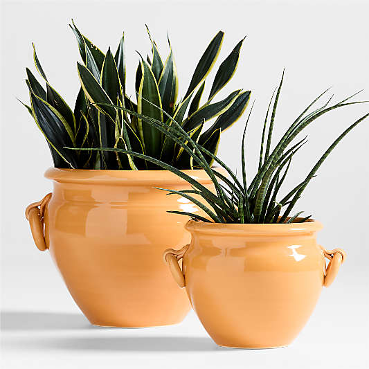 Whether you prefer live plants or artificial botanicals, be sure to house your greenery in a planter that suits your style. Indoor planters mesh with your furniture and decor, while garden planter pots give life to the patio or backyard space. Want to move your flora around as the seasons change? Indoor/outdoor planters feel at home no matter where you place them. Once you know where your botanicals are going to live, it's important to consider the different styles available. For example, floor planters are a classic option that add visual intrigue to the room. When doing your fall decorating with artificial plants, think about filling a floor pot with dried grasses or warmly-colored flower stems. Place them next to the living room sofa or dining room sideboard to help the space feel full and inviting. If you're looking for spring decor ideas, meanwhile, opt for lush greenery in a brightly colored planter. No floor area to spare for standing pots? Try hanging up convenient and modern wall planters, or use a tabletop planter to display your succulents as a centerpiece at your next dinner party. When it comes to outdoor planters, think bold; ones in striking shapes and colors stand out and define the mood of your open-air space. Large outdoor planters look regal on either side of the front door, while a collection of smaller outdoor flower pots make a natural addition to any balcony or windowsill.