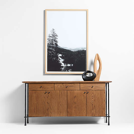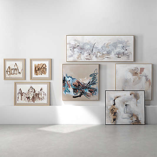 Decorate your home with wall art prints from Crate and Barrel. Discover a carefully curated collection of art prints, wall art, canvas prints, prints and posters, large canvas prints, black and white artwork, and framed wall art to inspire and elevate every corner of your home. Or, design a gallery wall with art prints in loud or vibrant colors to accent a room with soft hues and neutrals. Find a wall print that expresses your personal style and creates a unique feel to the space. Choose from gracefully painted fruit and vegetable or playful farm animal art prints for the kitchen or dining room. For a serene bedroom, try pairing a wall print of the ocean with marine-colored bedding, or something more earth-toned. Experimental abstract prints work in any room and create a visual centerpiece on the wall. Framed wall prints both add dimension and allow you to coordinate with other room accents—dark wood frames like walnut complement dark-stained wood accent and coffee tables, for example. Consider a canvas print for added definition and a lithograph canvas for high-quality artist reprints sure to draw attention. Wall prints add an extra oomph and are the perfect addition to any home.