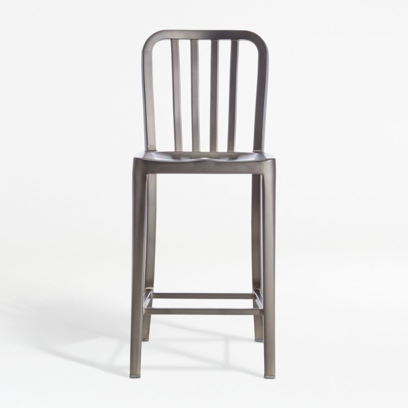 Each sturdy lightweight counter stool is welded and hand polished. The contoured back and molded seat ensure a comfortable sit at the kitchen counter or work table. Optional cushions feature a contemporary box style. The Delta Nickel Counter Stool is a Crate and Barrel exclusive.