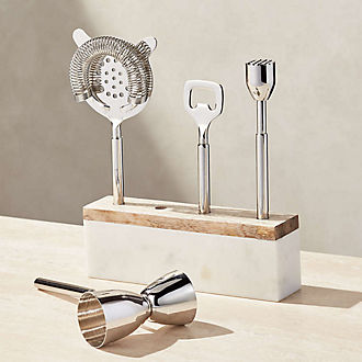 While carafes are well-suited to serve and store nearly all types of beverages, decanters are suited specifically to serving and storing wine, whisky, bourbon and liqueurs. Glass decanter designs range from classic to contemporary to mid-century modern and make a splash in your kitchen or on your bar cart next to bar accessories and bar tool sets. Accent your tabletop with a carafe or decanter that complements your other table accessories. For example, consider a glass decanter if your tableware is made of the same material. Looking for the perfect host gift for that dinner party invitation? Gift a decanter with a bottle of their favorite wine to show your appreciation for their hospitality.