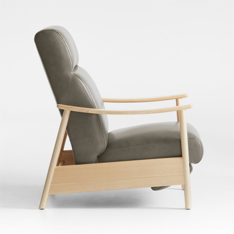 We've upgraded the time-tested recliner with a Scandinavian Modern-inspired design. Combining buttery soft leather and richly grained hardwood, the updated recliner hides its foot cushion beneath the seat and the wide-paneled side rail. Pushing on the back cushion allows the chair to angle to the desired recline with a well-proportioned tall back to support the head. Showing off the natural beauty of wood, the frame complements the curved cushions with round legs and dowel-shaped arms.By choosing FSC®-certified certified furniture, you are supporting responsible management of the world's forests.