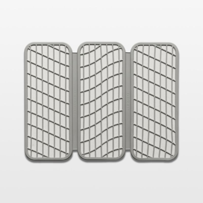 This ingenious pad instantly adds dish-drying space to your kitchen. Three quick-drying Diomat stones naturally draw in water on contact and resist mold, mildew, odors and moisture buildup. The gridded silicone mesh cover unites the stones, elevating and protecting dishes as they dry. Clean-lined and modern in chic neutrals, the slim, low-profile mat folds compactly when not in use.