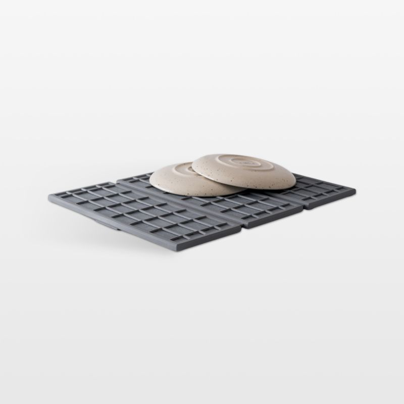 This ingenious pad instantly adds dish-drying space to your kitchen. Three quick-drying Diomat stones naturally draw in water on contact and resist mold, mildew, odors and moisture buildup. The gridded silicone cover unites the stones, elevating and protecting dishes as they dry. Clean-lined and modern in chic neutrals, the slim, low-profile mat folds compactly when not in use.