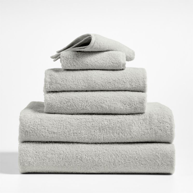 Organic Turkish Cotton Slate Grey Bath Towels, Set of 6