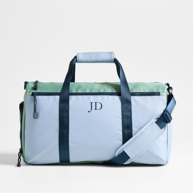 For sleepovers or swim meets, kids will be happy to sling this stylish colorblock duffle bag over their shoulder. Made of supremely durable polyester (that includes recycled plastic bottles), the duffle features a roomy main compartment and multiple zippered pockets to keep essentials secure. With optional monogramming, the bag can be paired with our matching lunch box and backpack for a fully coordinated look.
