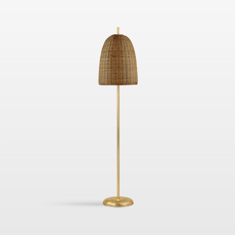 Drawing upon the artisan appeal of traditional basketry, the Dresden floor lamp features an oversized bell shade made of woven abaca fiber. The intricately woven shade diffuses light to a warm ambient glow, while the slim pole and domed base finished in gleaming aged brass adds dazzling shine.