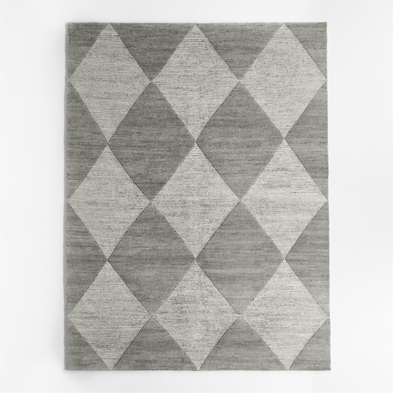Dreux scales up the classic harlequin motif to layer the room with modern pattern and a mix of textures. The graphic design alternates light-grey diamonds made of a chunky wool-blend yarn with dark-grey diamonds crafted of lustrous viscous. The variations in tone enhance the artisan appeal of the hand-knotted rug, while the lush pile feels wonderful underfoot. Classic yet contemporary, the wool-blend area rug lays a sophisticated foundation for the medium-traffic living or dining room.