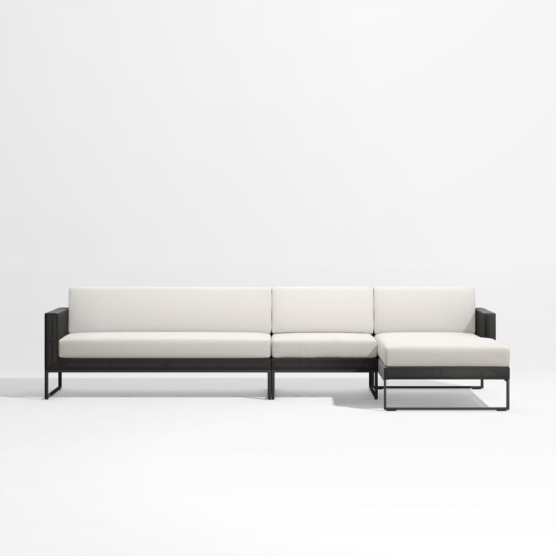 Dune 3-Piece Black and White Outdoor Sectional Sofa with Right-Arm Chaise