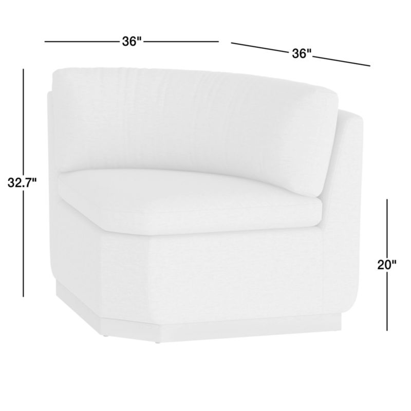 Edendale graces your kitchen or dining room with the look of custom, built-in banquette seating. The corner chair gets cozy with a generously cushioned seat and two plump back cushions set against a gently reclined back. The plinth base elevates for a floating look, while complementing the upholstery with the warm look of fumed oak. Combine the corner with other Edendale components to create the perfect banquette arrangement to suit your space.