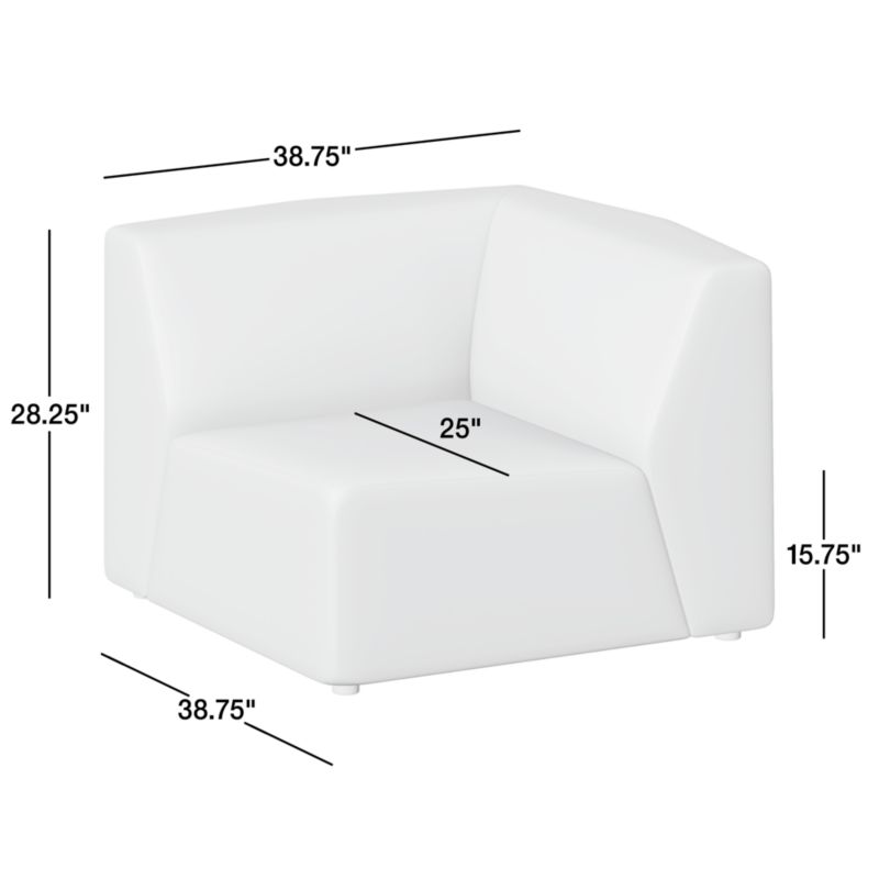 Eero Modular Corner Chair Sectional Piece by Jeremiah Brent28.25"Hheight38.75"Wwidth38.75"DdepthMeasurements are in inches.